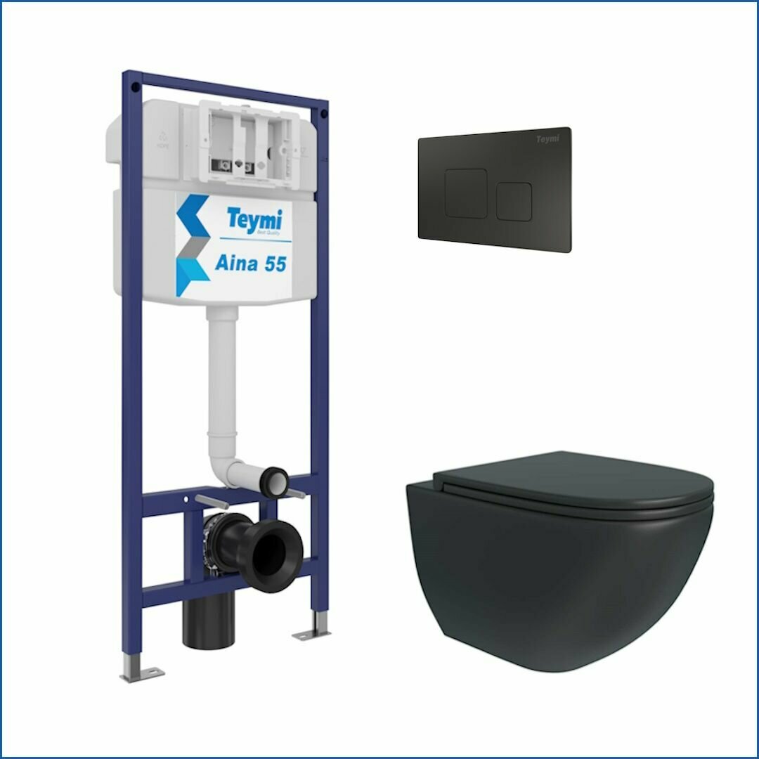 Инсталляция с унитазом комплект 5 в 1 Teymi унитаз подвесной безободковый черный Lina S Black кнопка черная F13887 26 304 ₽