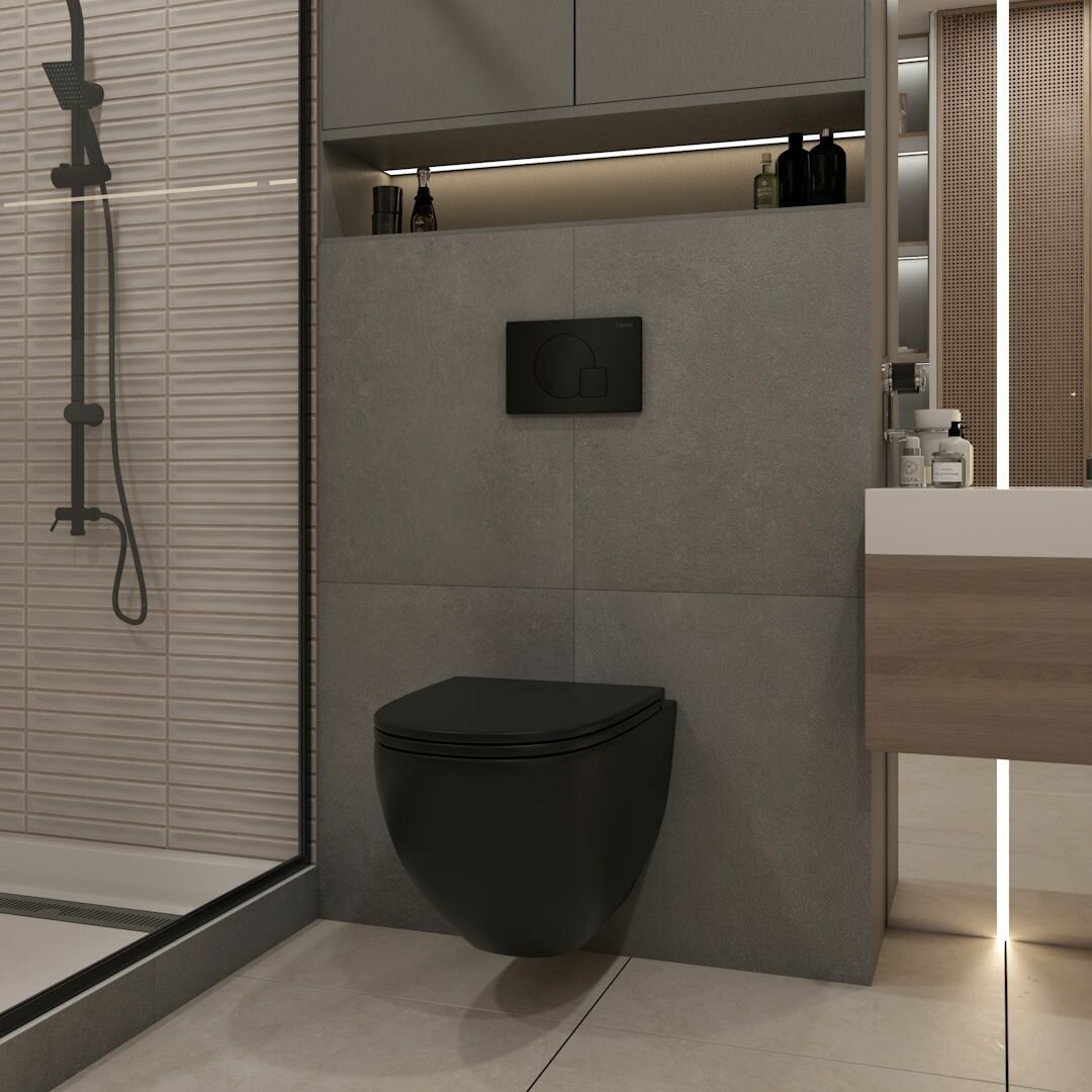 Инсталляция с унитазом комплект 5 в 1 Teymi унитаз подвесной безободковый черный Lina S Black кнопка черная F13889 37 810 ₽