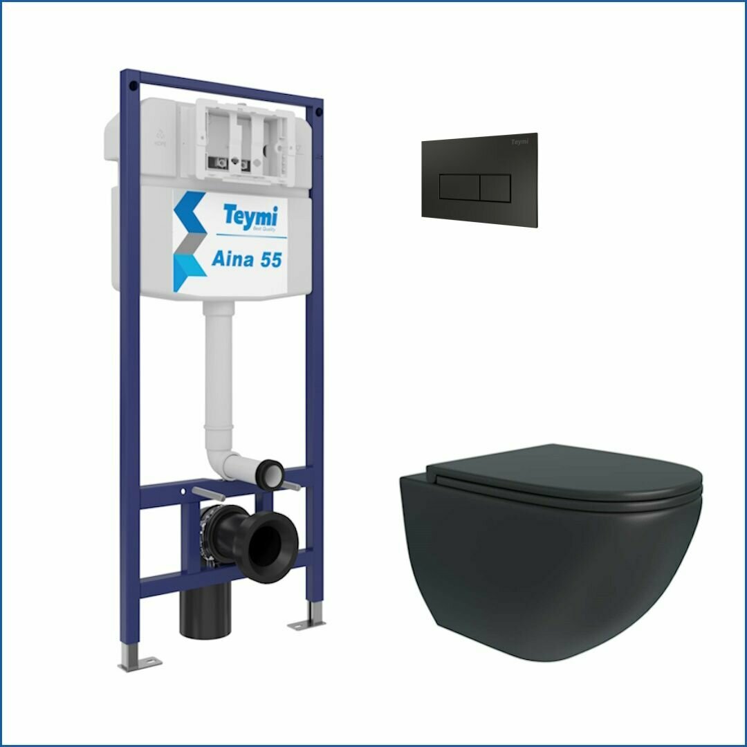 Инсталляция с унитазом комплект 5 в 1 Teymi унитаз подвесной безободковый черный Lina S Black кнопка черная F13885 информация: