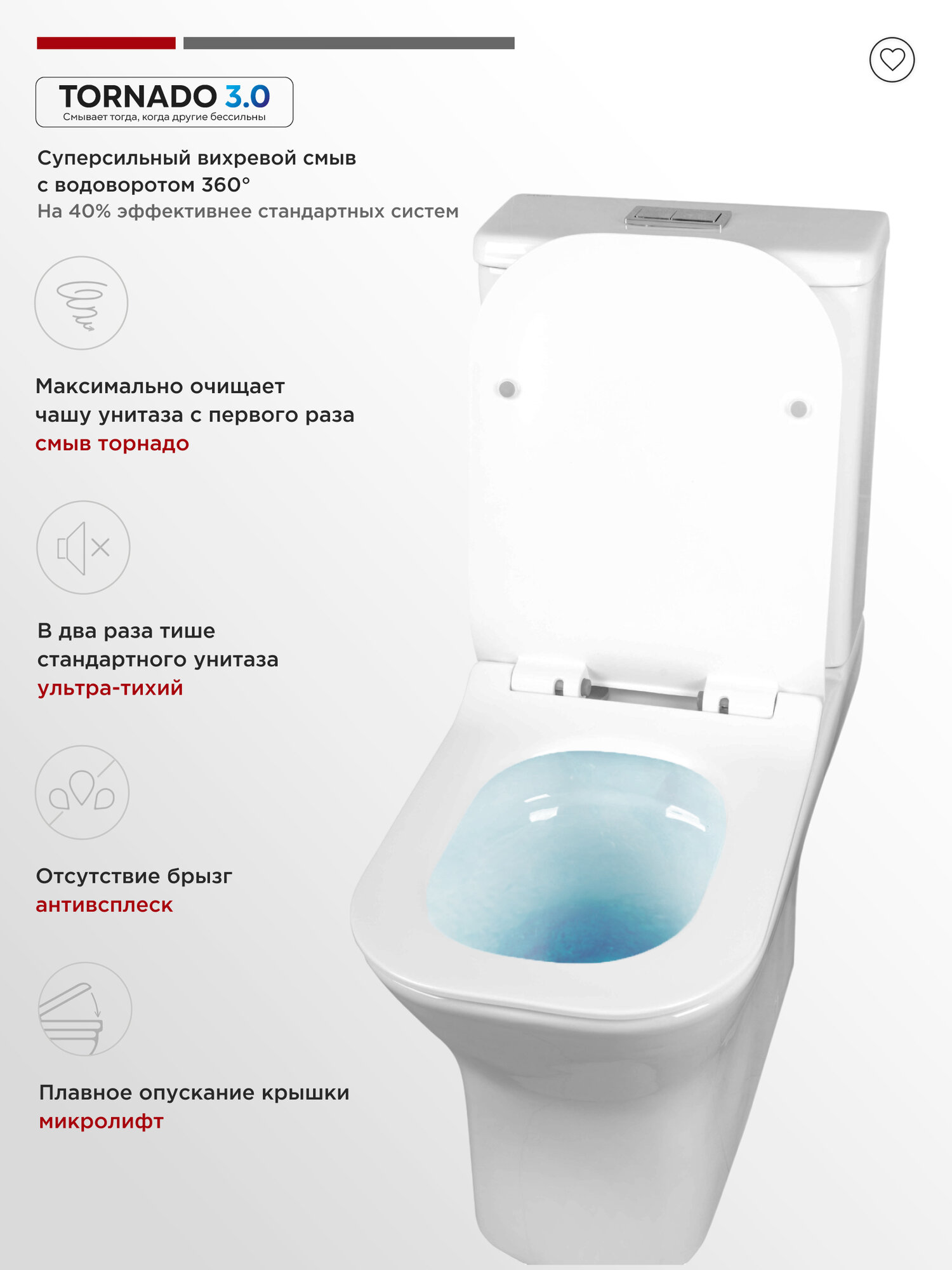 10 цен на Унитаз напольный с бачком TOKITO TATSUMAKI AIKO SQUARE безободковый, система Торнадо с микролифтом, белый