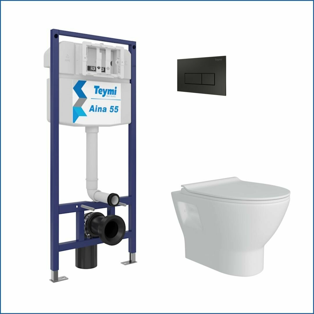 Инсталляция с унитазом комплект 5 в 1 Teymi унитаз подвесной безободковый Ritta кнопка черная F13841 информация: