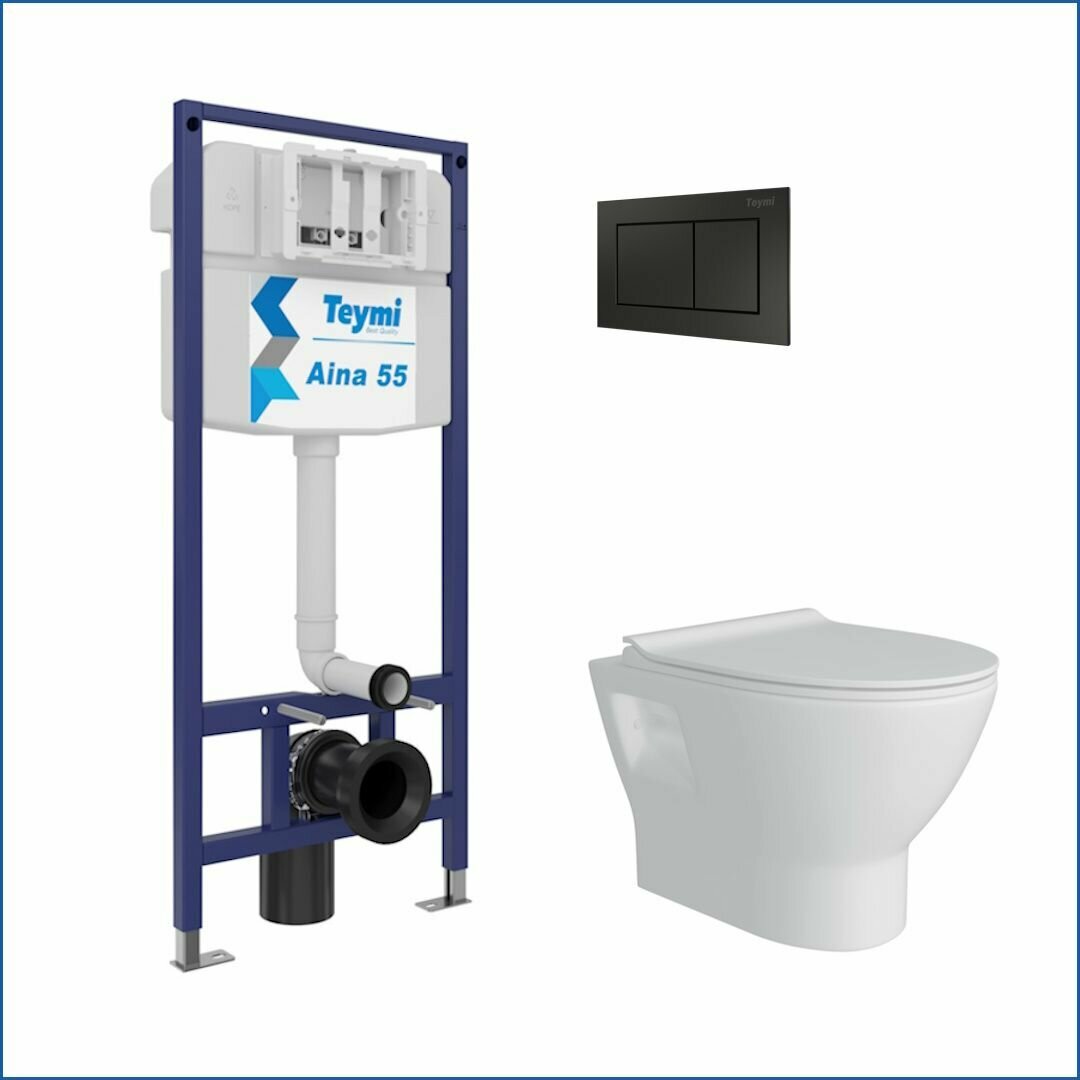 Отзывы на Инсталляция с унитазом комплект 5 в 1 Teymi унитаз подвесной безободковый Ritta кнопка черная F13845