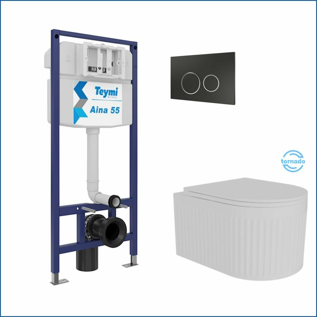 Инсталляция с унитазом комплект 5 в 1 Teymi унитаз подвесной безободковый торнадо Martta Vortex кнопка черная / хром F14568 информация: