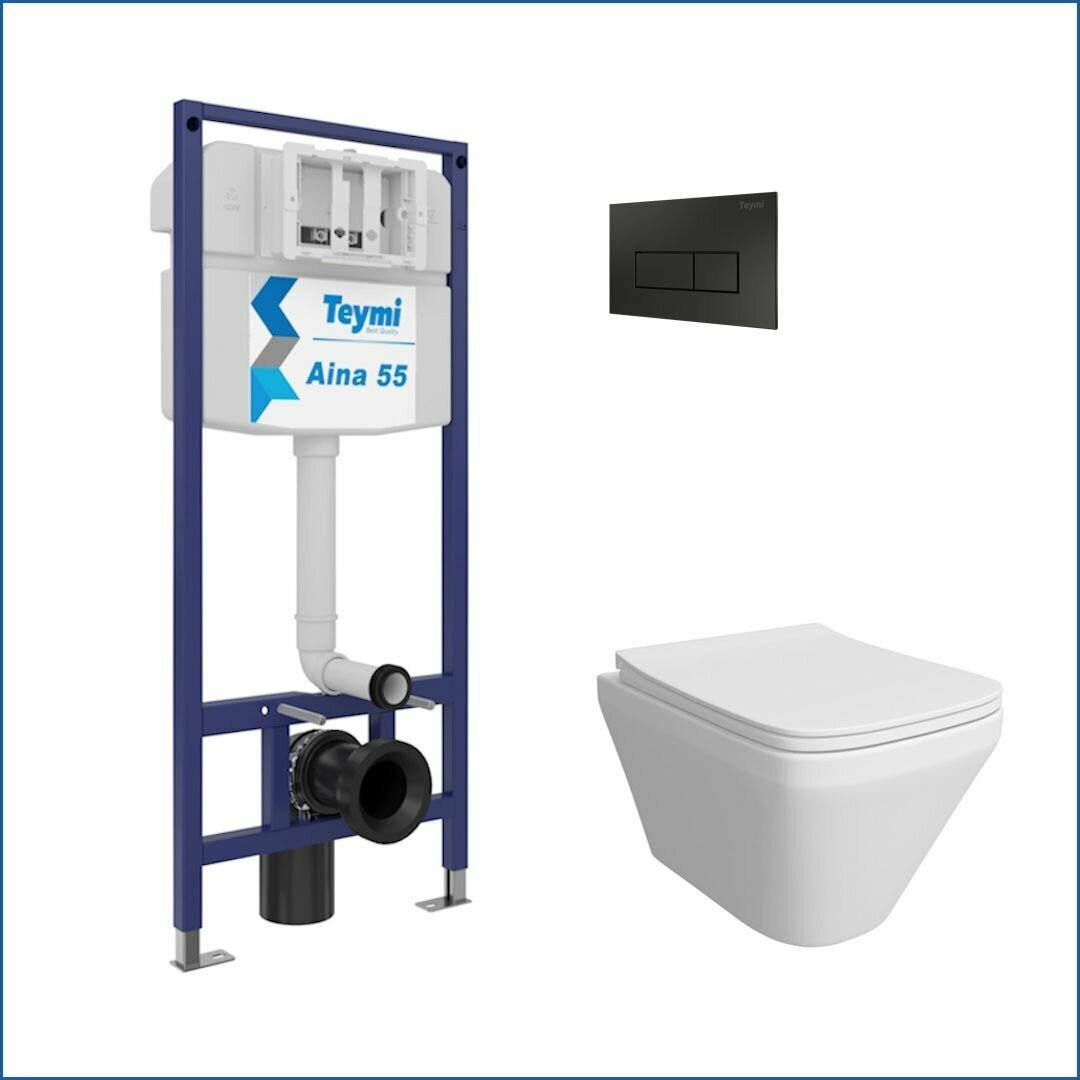 10 цен на Инсталляция с унитазом комплект 5 в 1 Teymi унитаз подвесной безободковый Kati кнопка черная F13687