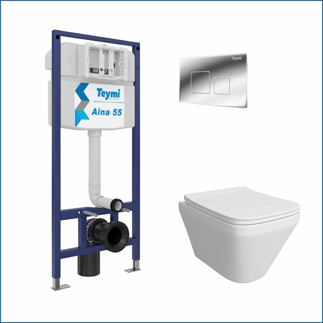 10 цен на Инсталляция с унитазом комплект 5 в 1 Teymi унитаз подвесной безободковый Kati кнопка хром F13692