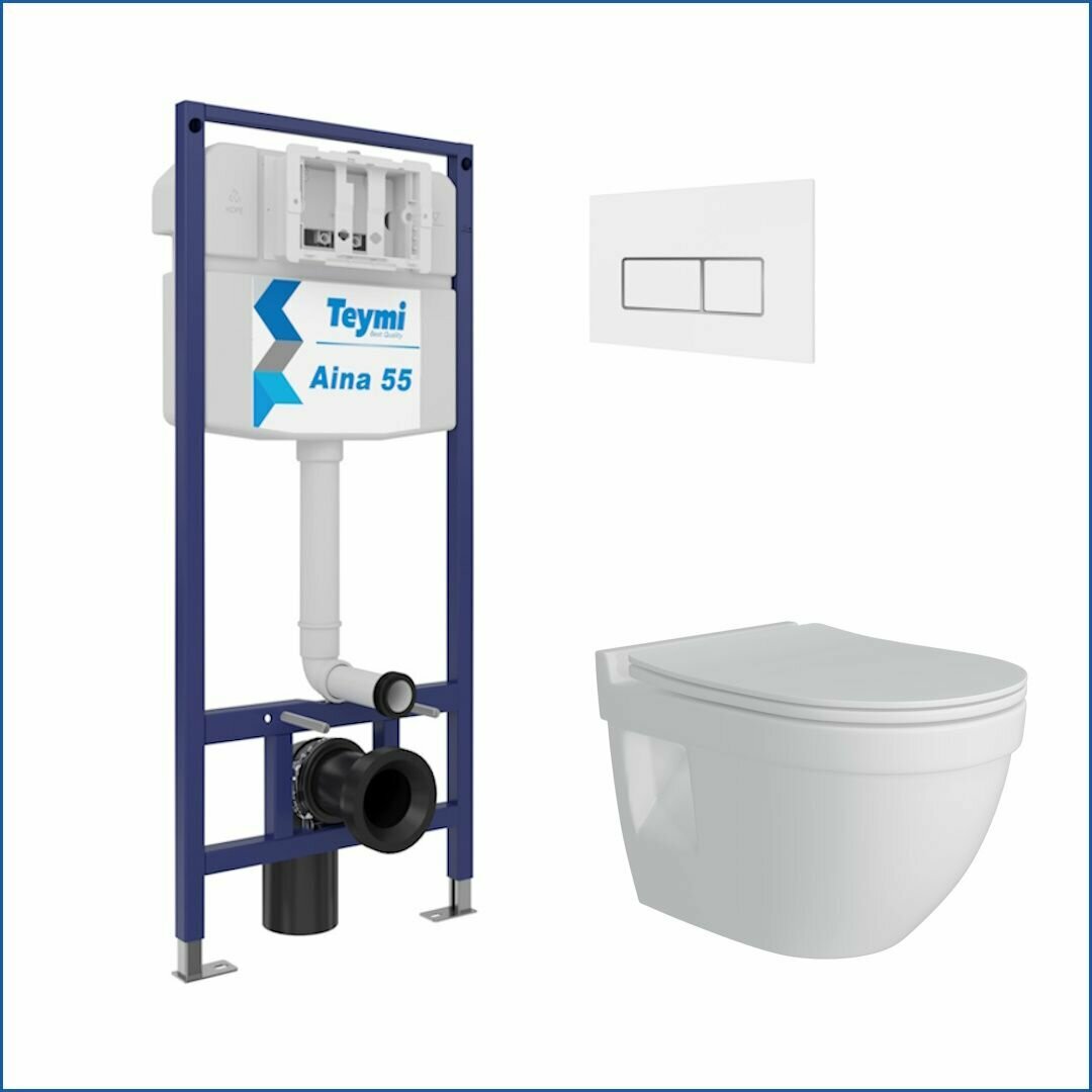 Инсталляция с унитазом комплект 5 в 1 Teymi унитаз подвесной безободковый Vitra Pro кнопка белая F13763 29 979 ₽