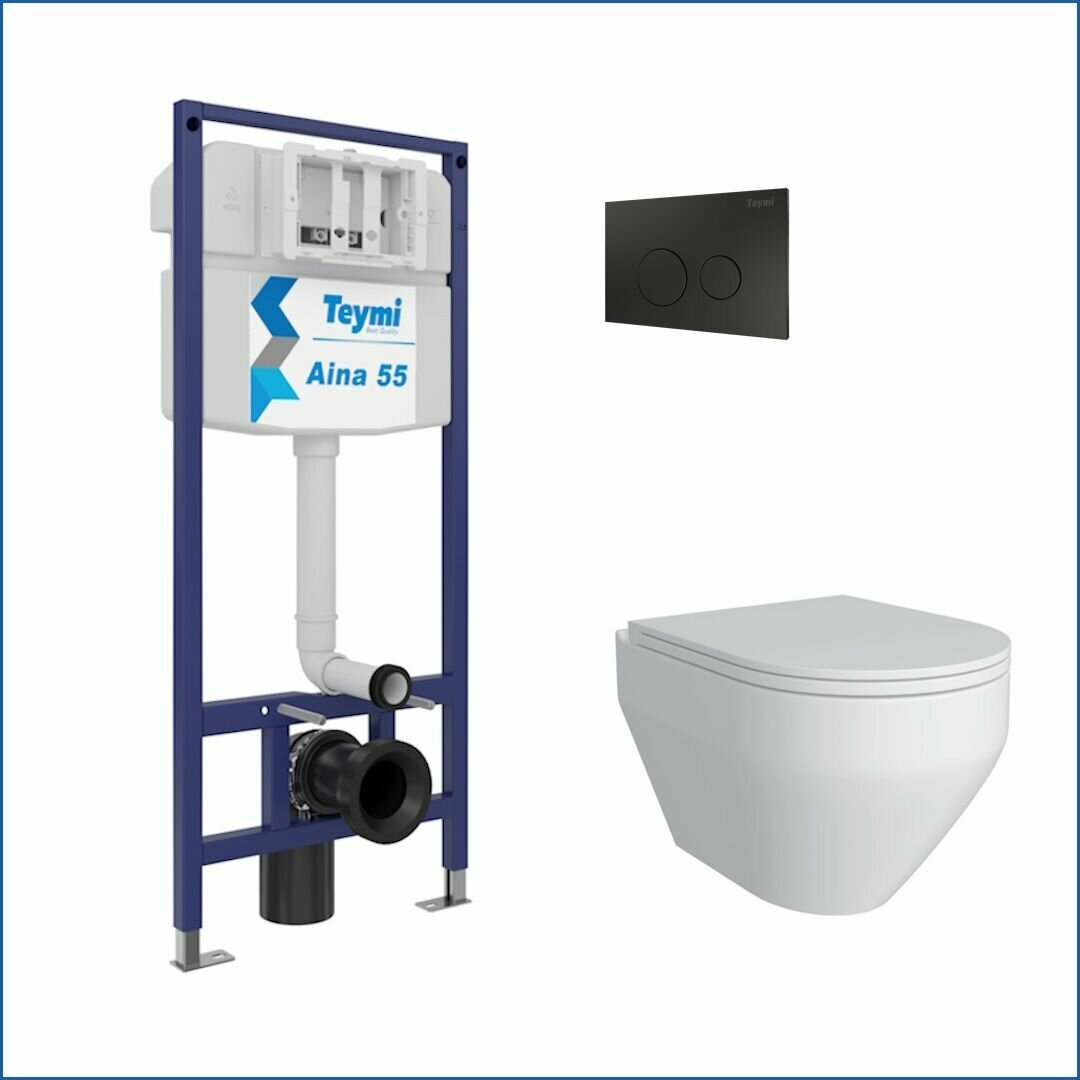 10 цен на Инсталляция с унитазом комплект 5 в 1 Teymi унитаз подвесной безободковый Demi кнопка черная F13799