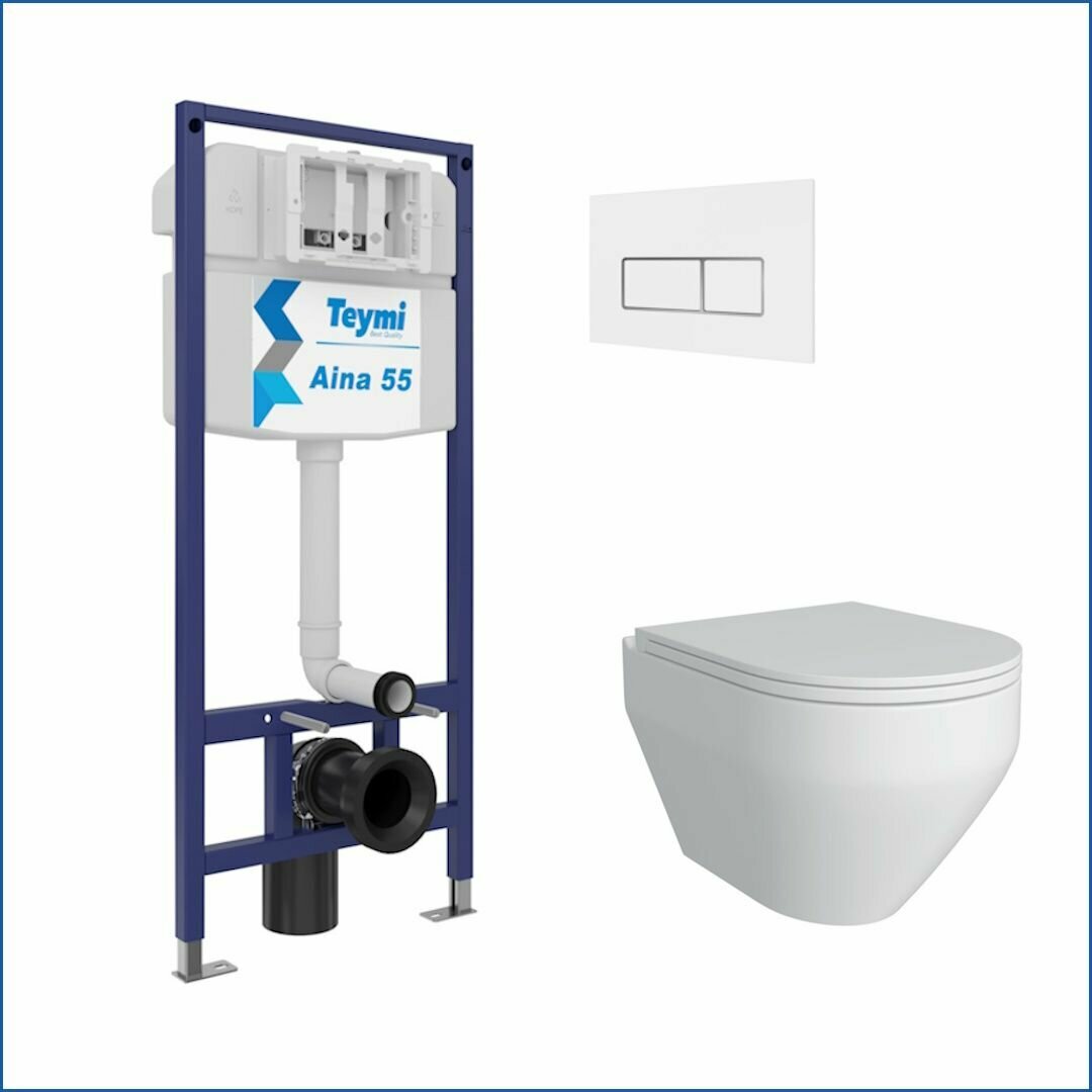 Инсталляция с унитазом комплект 5 в 1 Teymi унитаз подвесной безободковый Demi кнопка белая F13806 32 079 ₽