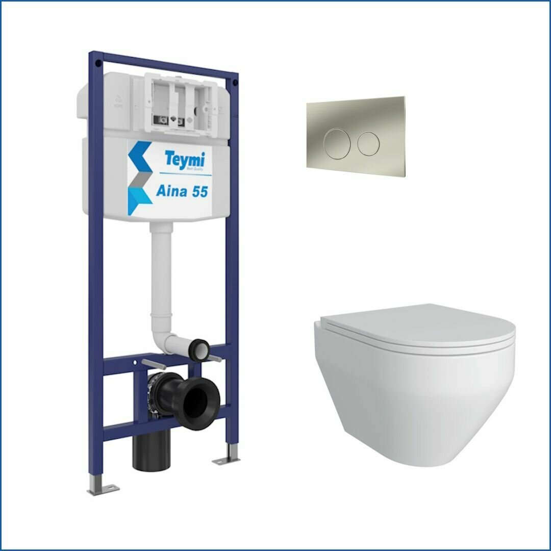 Инсталляция с унитазом комплект 5 в 1 Teymi унитаз подвесной безободковый Demi кнопка нержавеющая сталь F13817 33 150 ₽