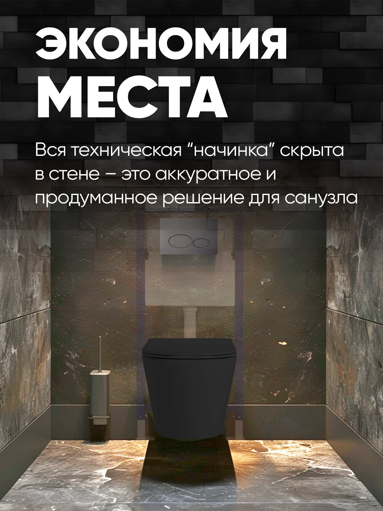 Комплект IDDIS Basic BASBQ02i73: подвесной унитаз, инсталляция и черная клавиша смыва