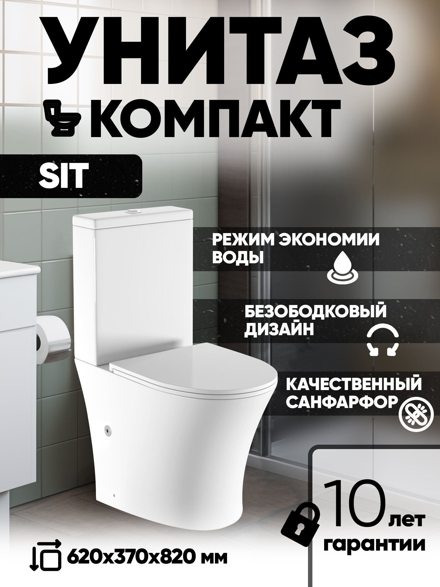 10 цен на Унитаз-компакт безободковый SIT (620*370*820мм, сиденье дюропласт с микролифтом, арматура 2-х режимная) белый