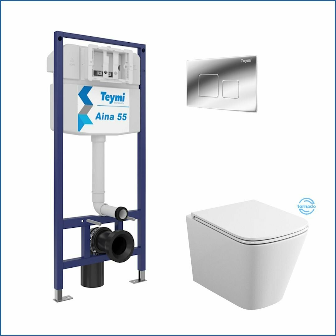 Инсталляция с унитазом комплект 5 в 1 Teymi унитаз подвесной безободковый торнадо Helmi Vortex кнопка хром F13604 информация: