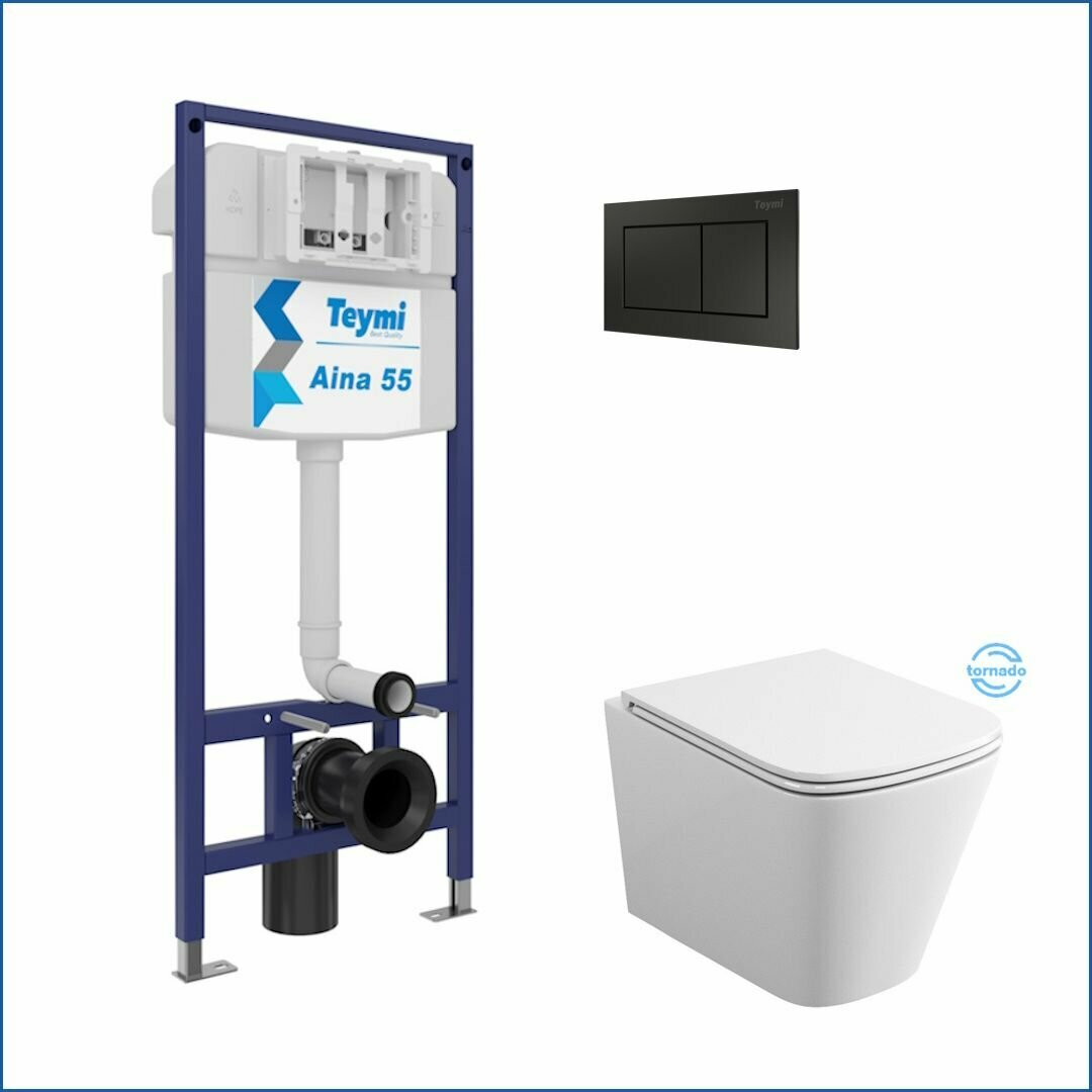 Инсталляция с унитазом комплект 5 в 1 Teymi унитаз подвесной безободковый торнадо Helmi Vortex кнопка черная F13603 информация: