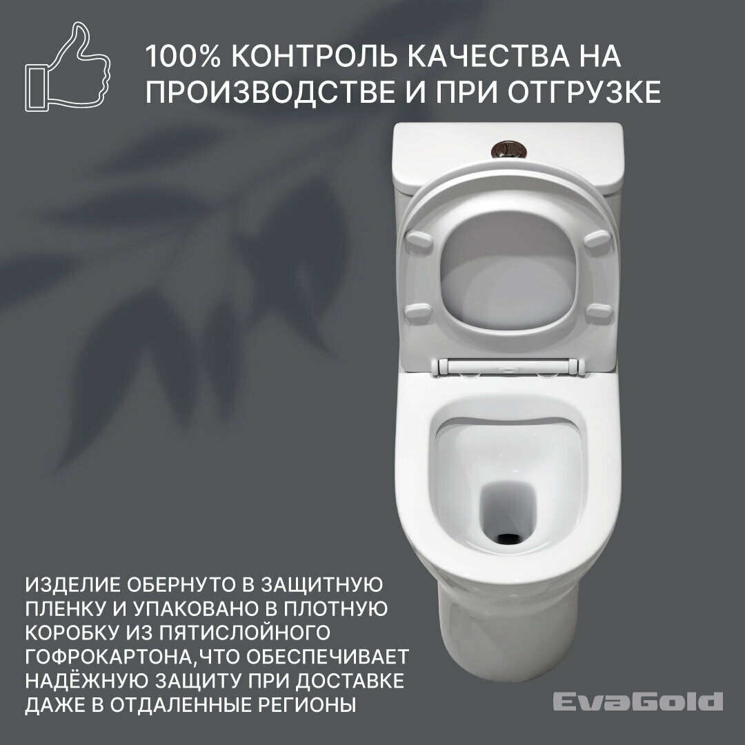 10 цен на Унитаз напольный моноблок EvaGold безободковый, модель ND302.14 белый для ванной с гофрой и подводкой