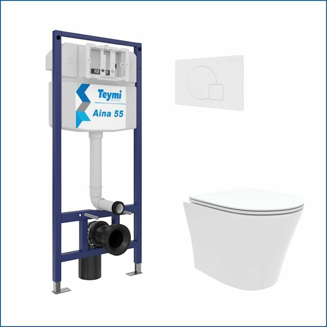 Инсталляция с унитазом комплект 5 в 1 Teymi унитаз подвесной безободковый Ellie кнопка белая F13656 информация: