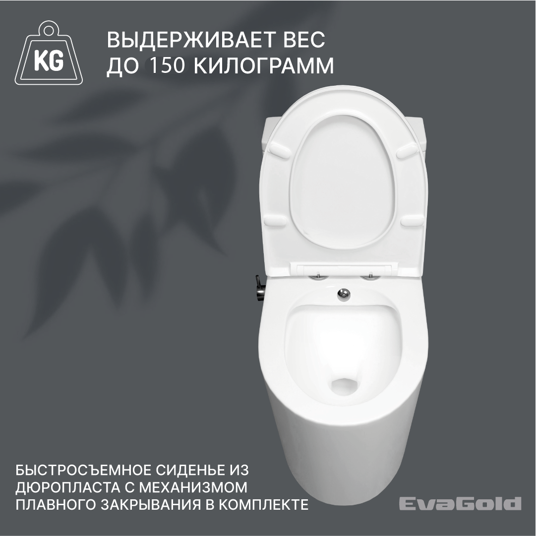 10 цен на Унитаз напольный моноблок EvaGold безободковый со встроенным биде, модель ND302.4 белый для ванной с гофрой и подводкой