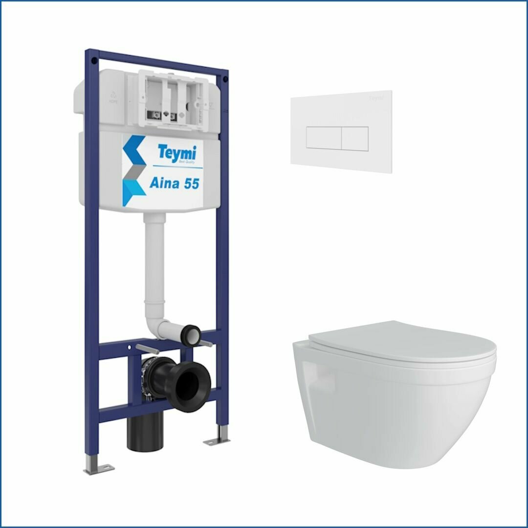 Инсталляция с унитазом комплект 5 в 1 Teymi унитаз подвесной безободковый Vitra кнопка нержавеющая сталь F13789 33 150 ₽