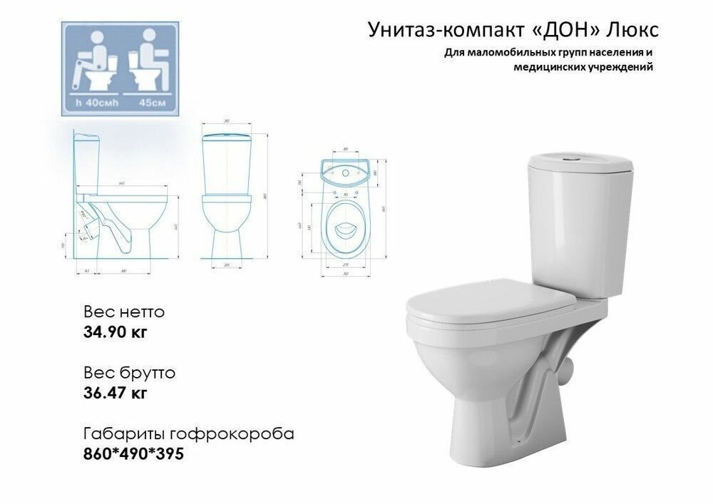 Роса Дон Люкс унитаз-компакт белый / ROSA Дон Люкс унитаз-компакт косой выпуск двойной слив белый информация: