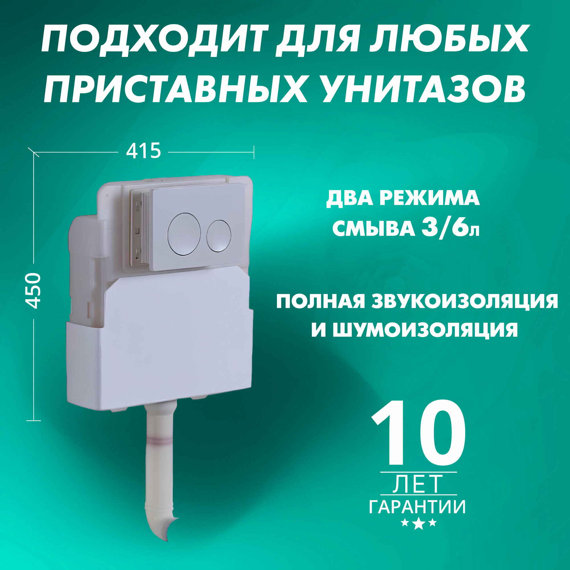 10 цен на Унитаз приставной с бачком скрытого монтажа EvaGold набор ND803.5 безободковый, с кнопкой смыва круг серый матовый