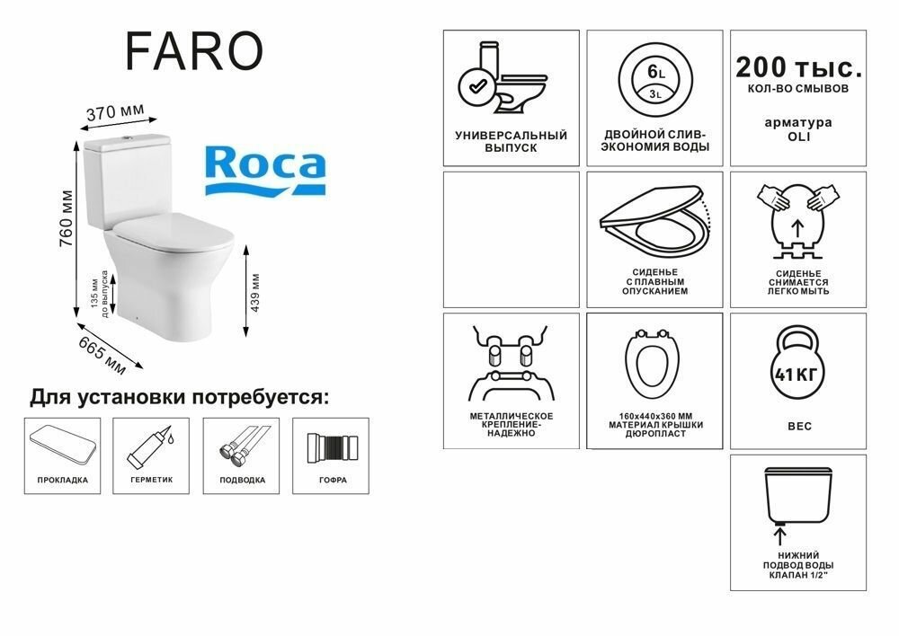 Отзывы на Роса Фаро унитаз-компакт белый / ROCA Faro унитаз-компакт горизонтальный выпуск двойной слив белый
