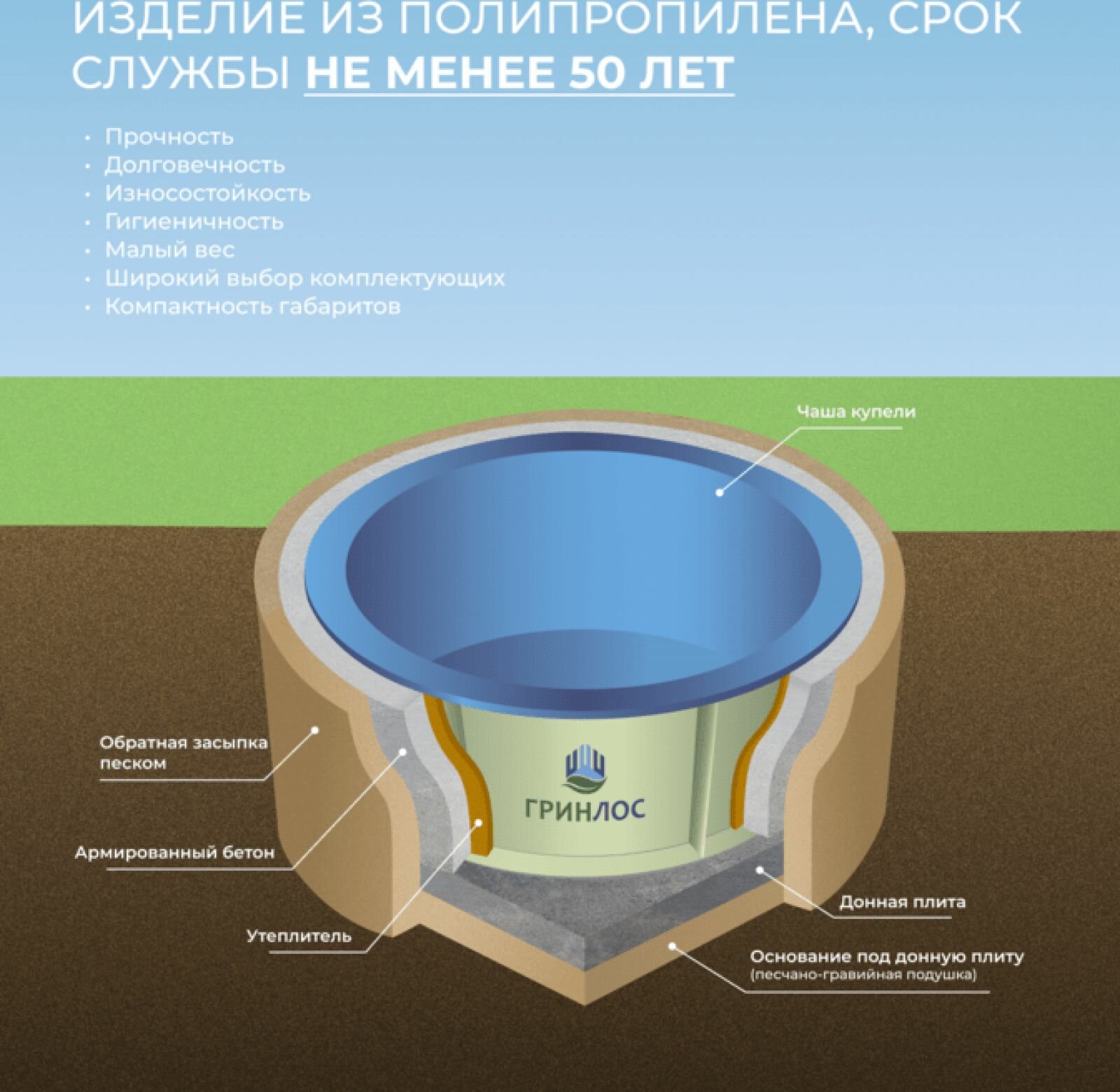 Пластиковый бассейн гринлос Купель 2000*2000*1200 Круглая из полипропилена, 3.8 м3 информация: