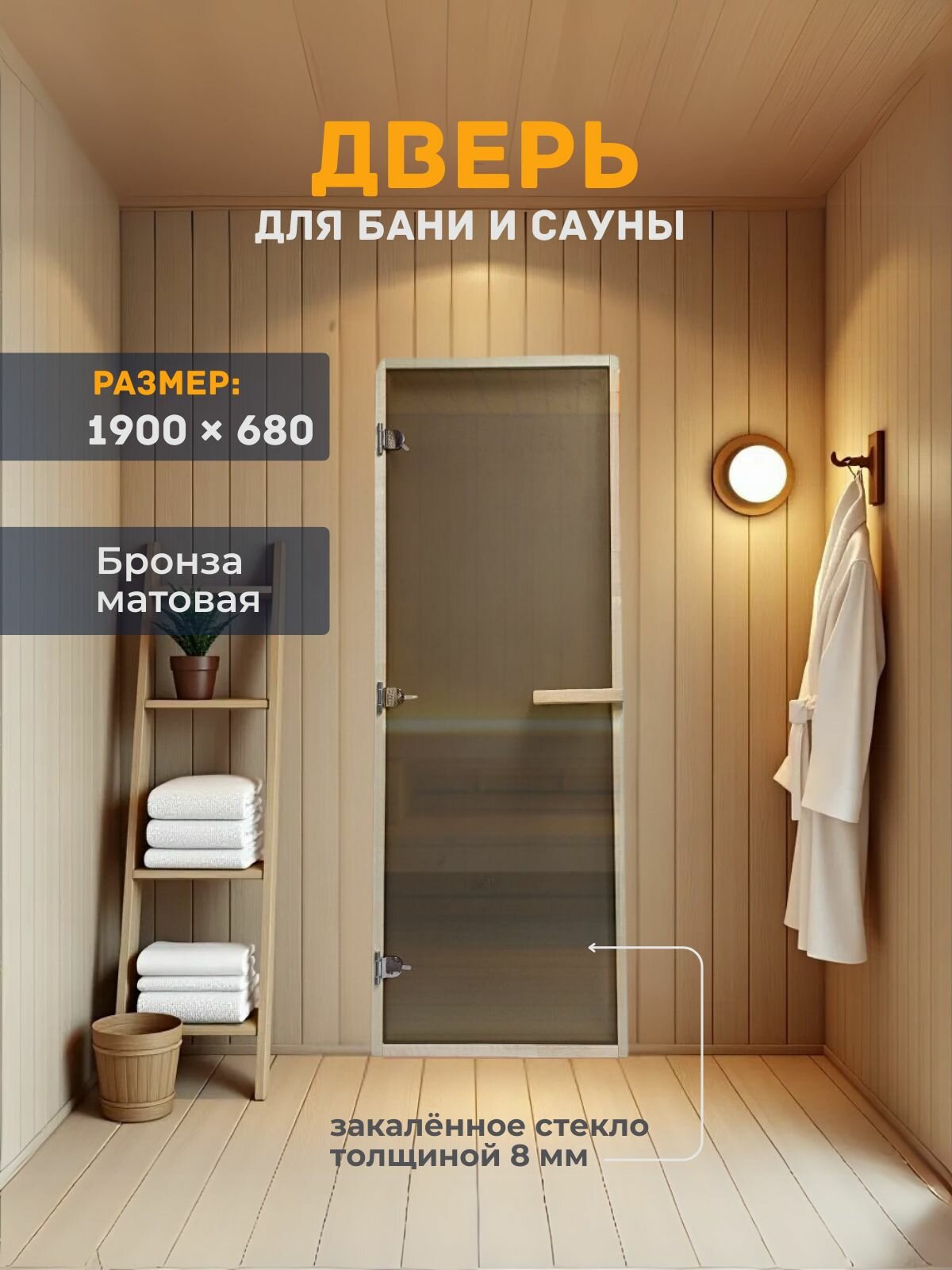 Дверь для бани/сауны 1900х680 8мм Бронза матовая информация: