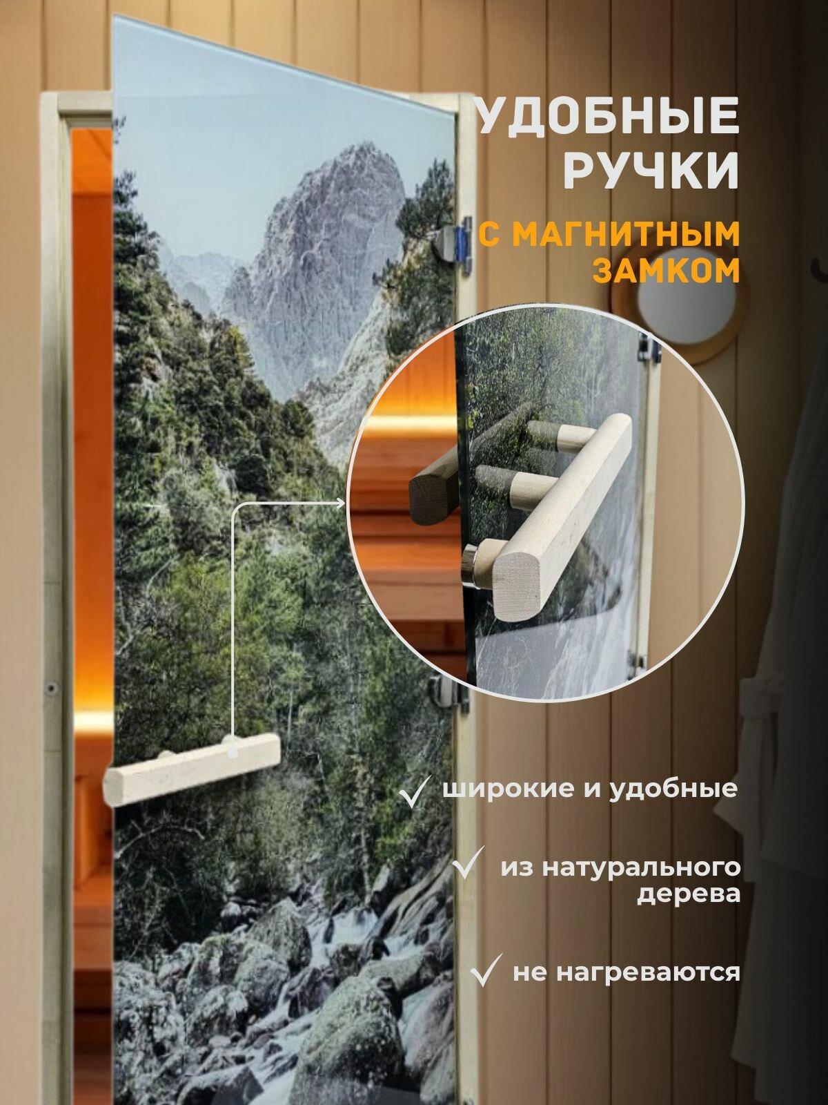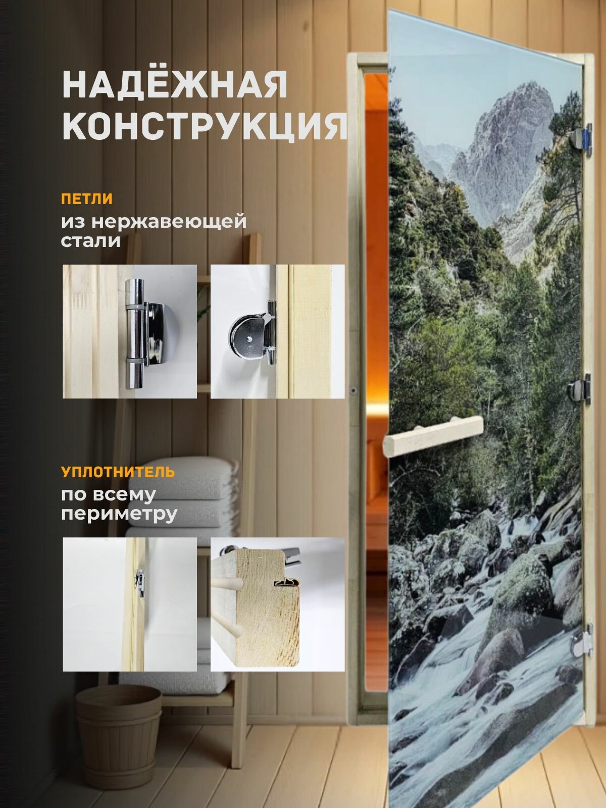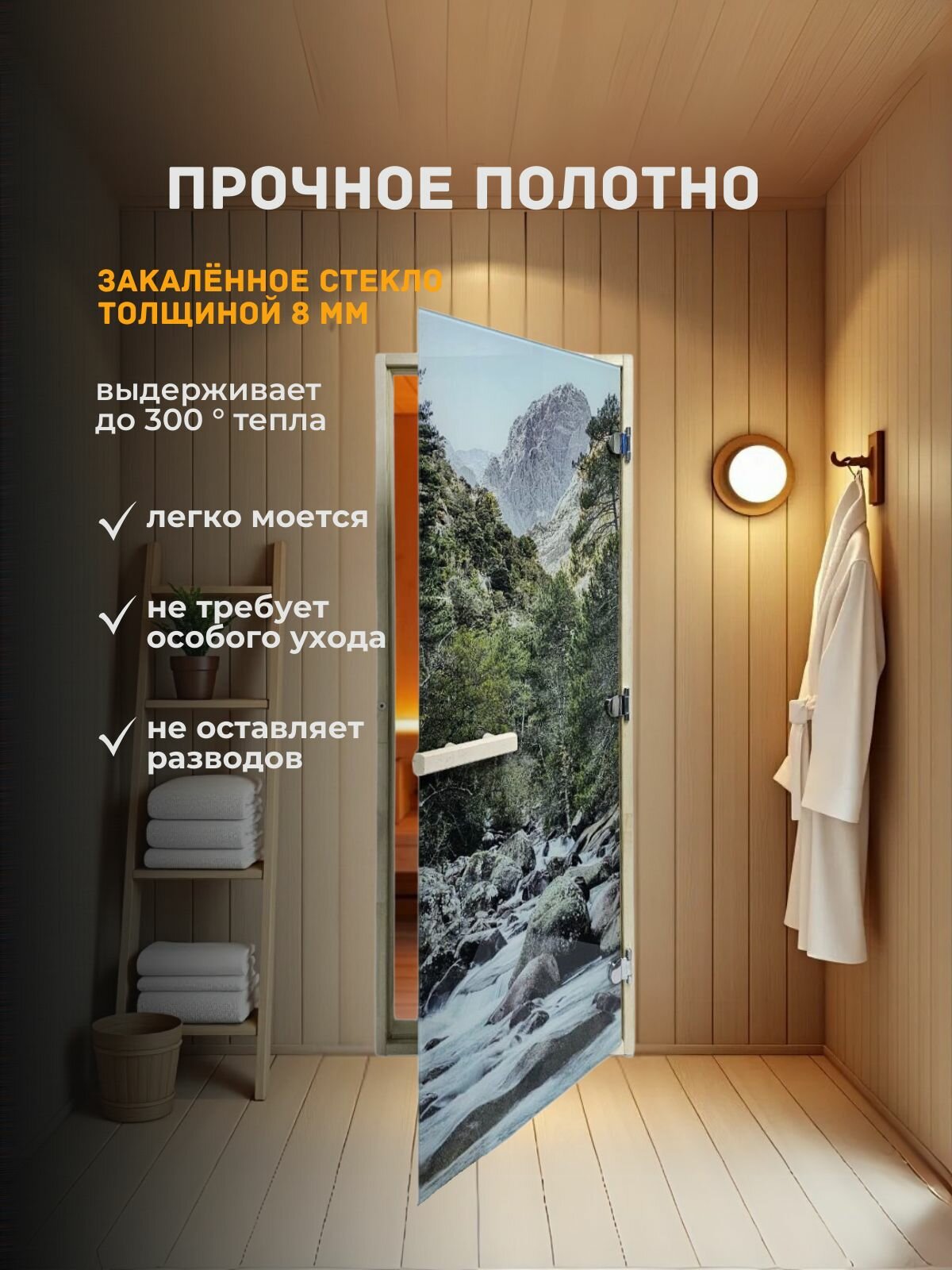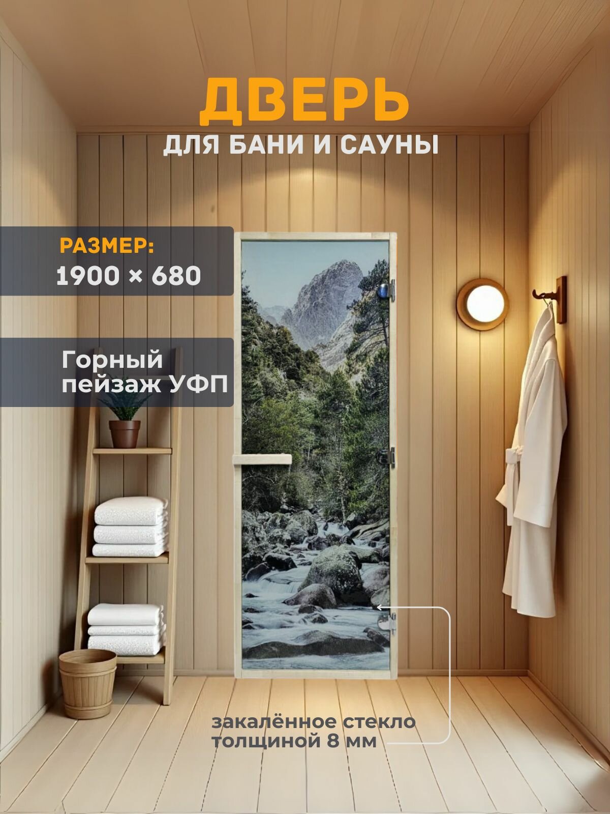 Дверь для бани/сауны 1900х680 8мм Горный пейзаж УФП информация: