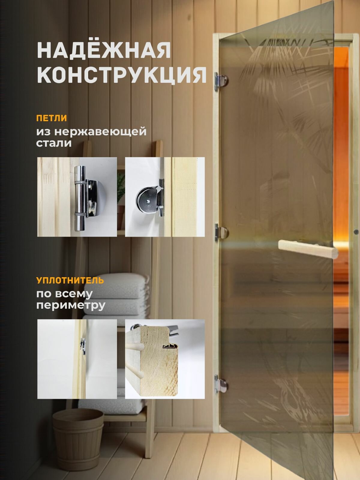 10 цен на Дверь для бани/сауны 1800х680 8мм Парус Пескоструй