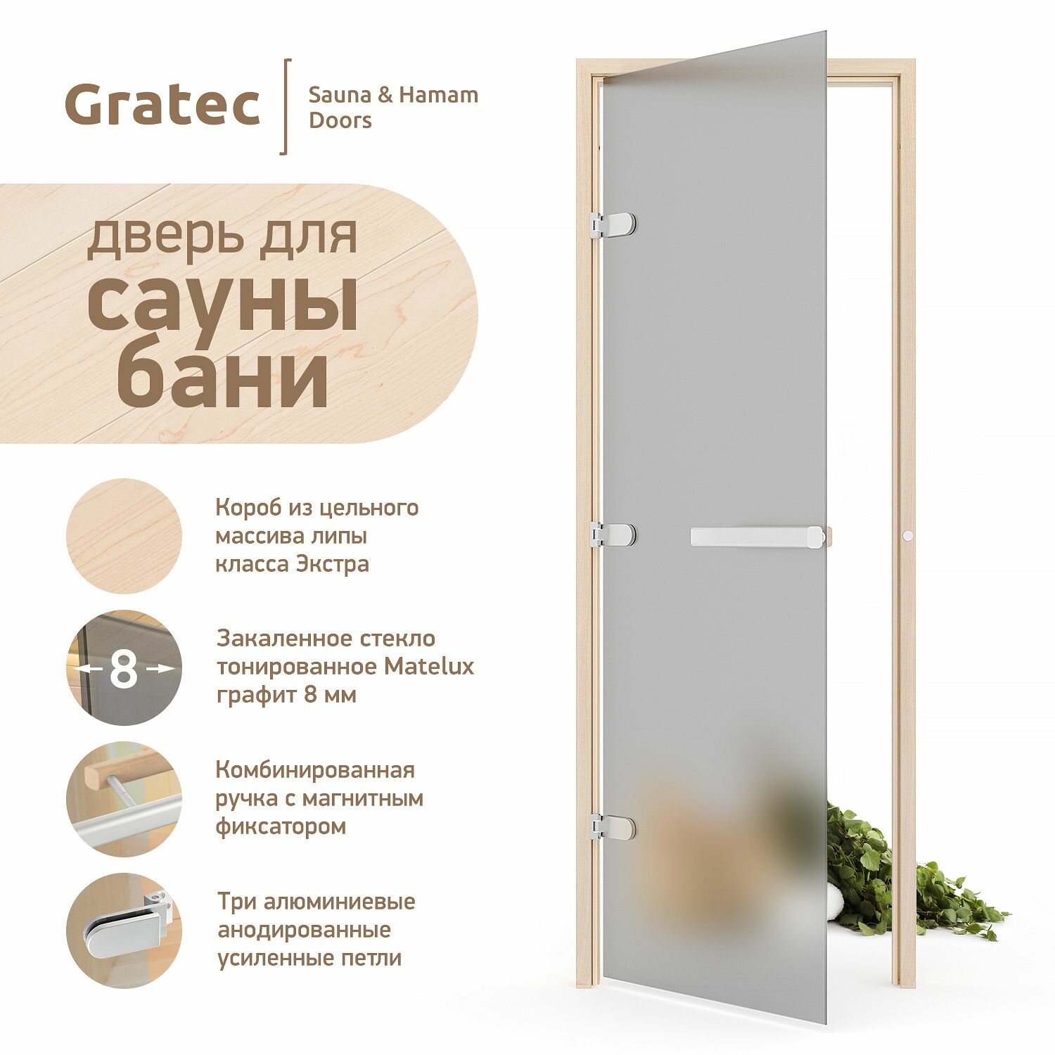10 цен на Дверь для бани и сауны Gratec Kati, короб из массива липы, серое матовое закаленное стекло 8 мм, левое открывание