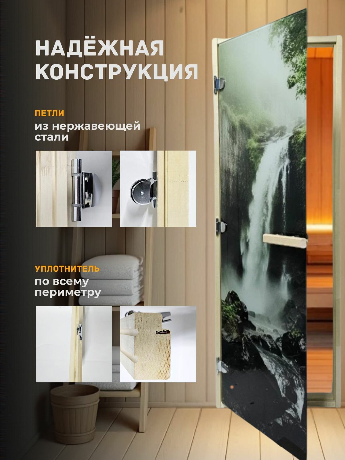 Дверь для бани/сауны 1800х680 8мм Горный Водопад УФП информация:
