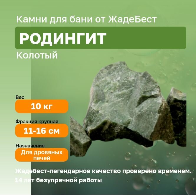 Родингит колотый крупный Жадебест для бани и сауны, 10 кг информация:
