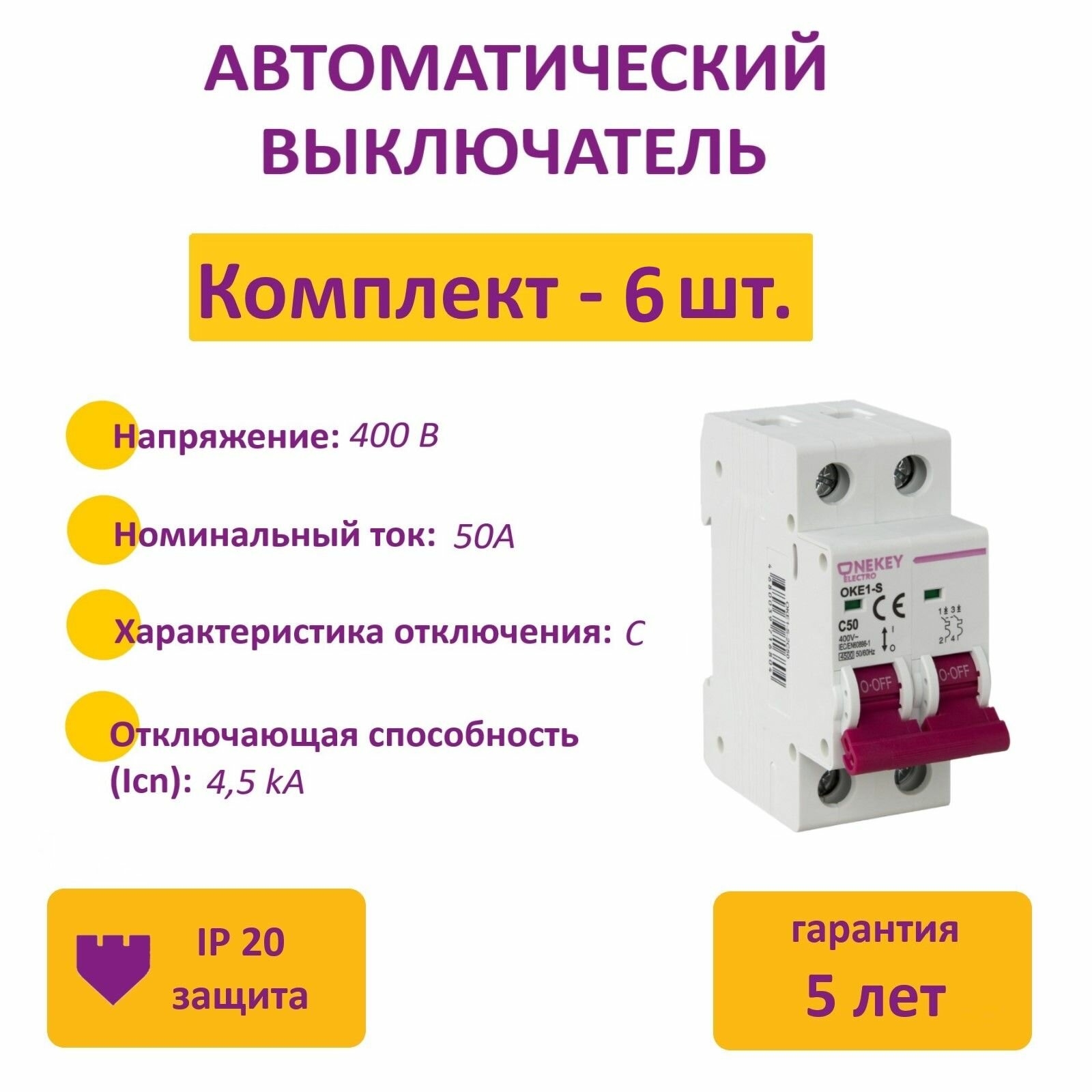 Комплект. Автоматический выключатель OneKeyElectro 2P, 4.5kA, С-50A, 2M (6 шт). информация: