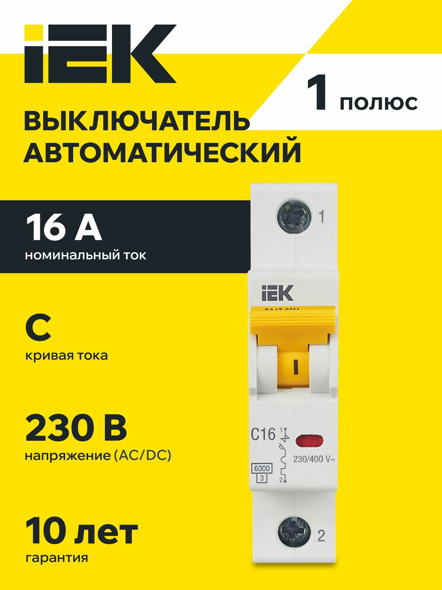 Автоматический выключатель KARAT ВА47-60M, 1Р, хар-ка С, 16А, 6кА, IEK информация: