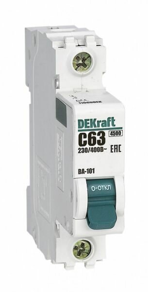 Отзывы на Автоматический выключатель 1-пол. 63А тип C 4,5кА серия ВА-101 11060DEK DEKraft