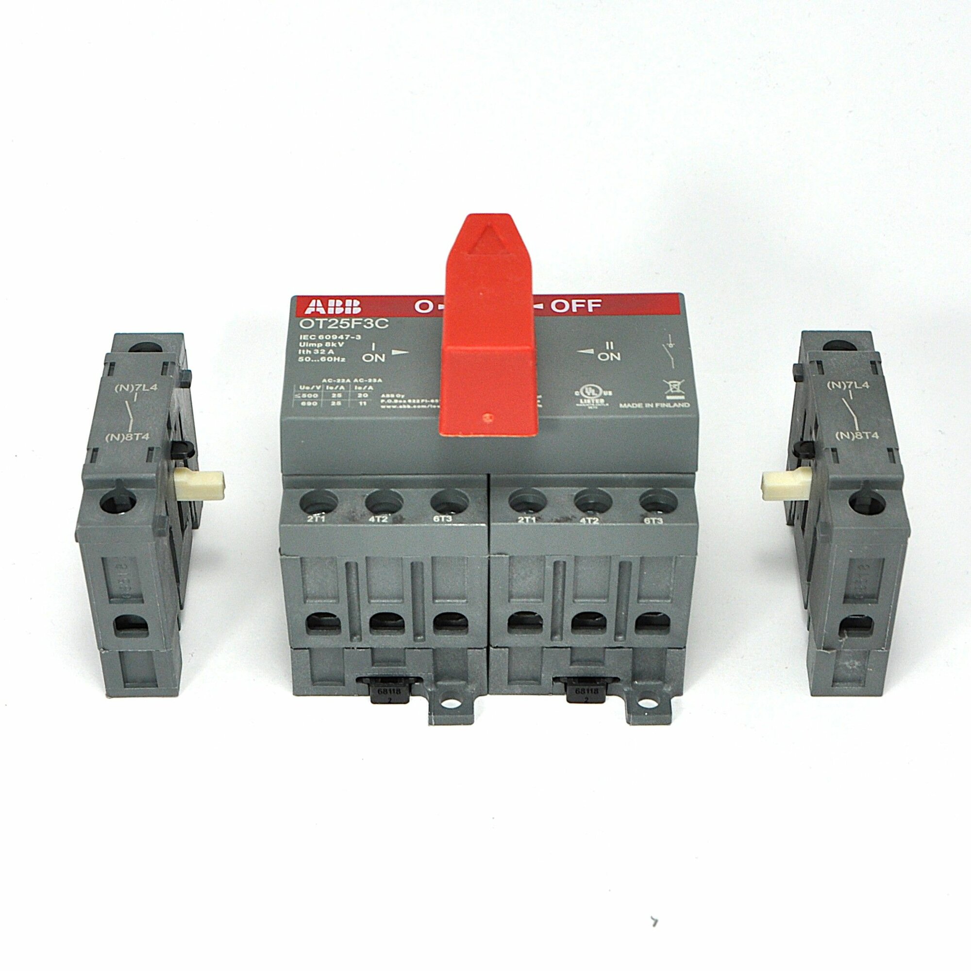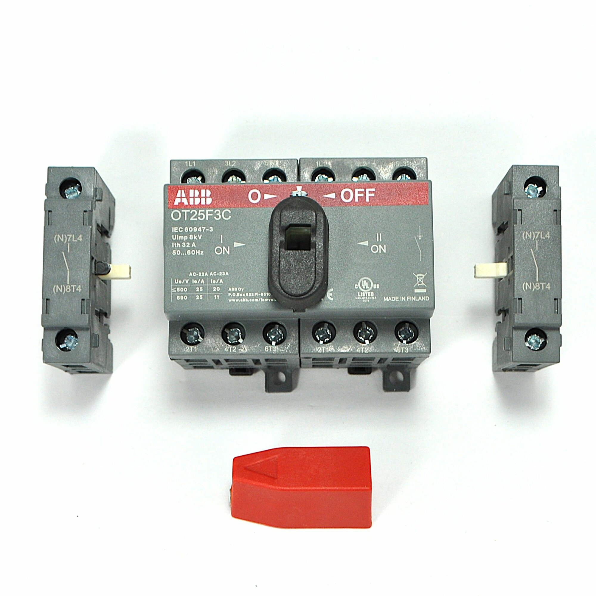 ABB OT25F3C 25А IP20 DIN 3P с ручкой и полюсами OTPS40FPN1/2, реверсивный рубильник, комплект 4 в 1, 1SCA104863R1001 информация: