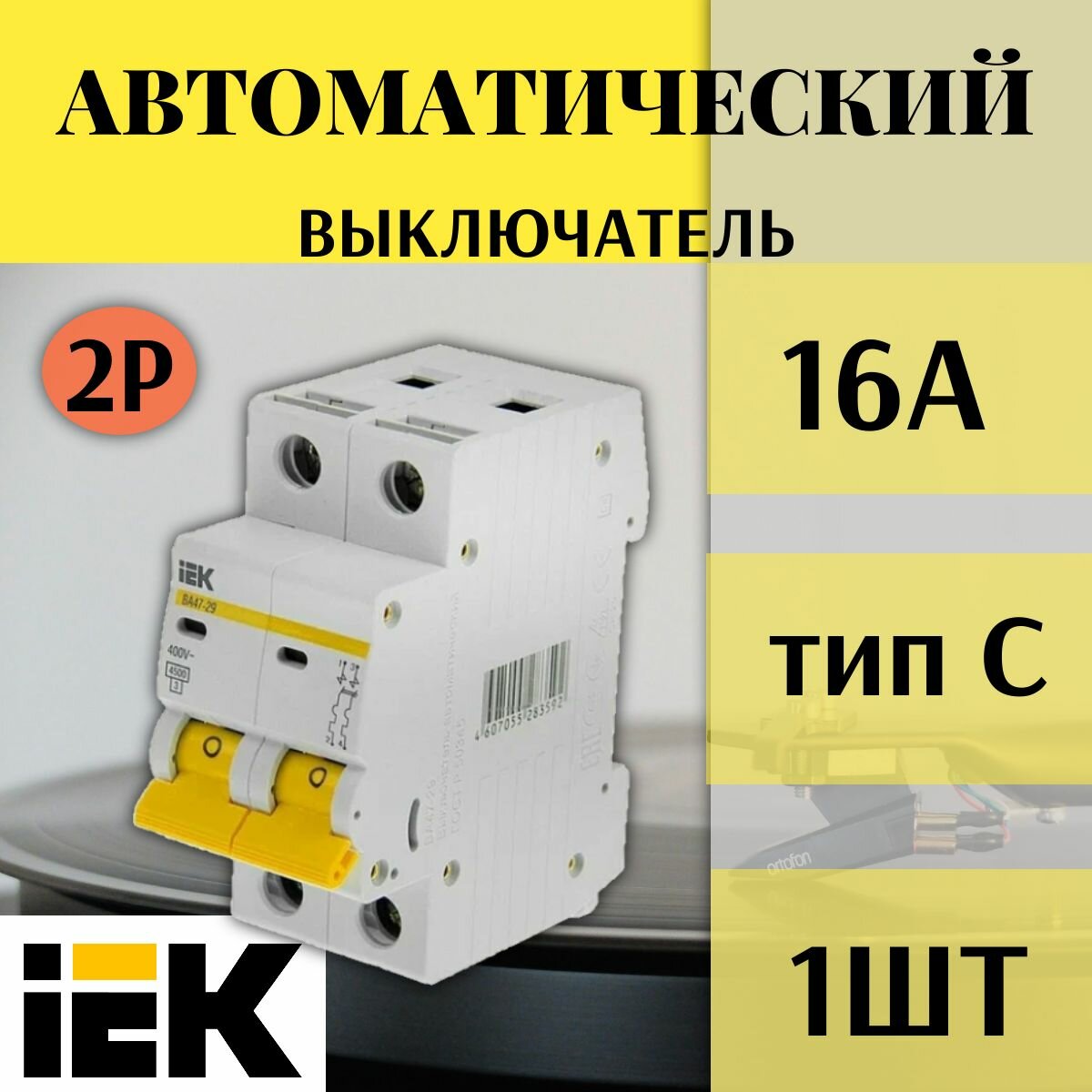 Автоматический выключатель IEK 16А 2P 4,5кА тип С.1 шт. информация: