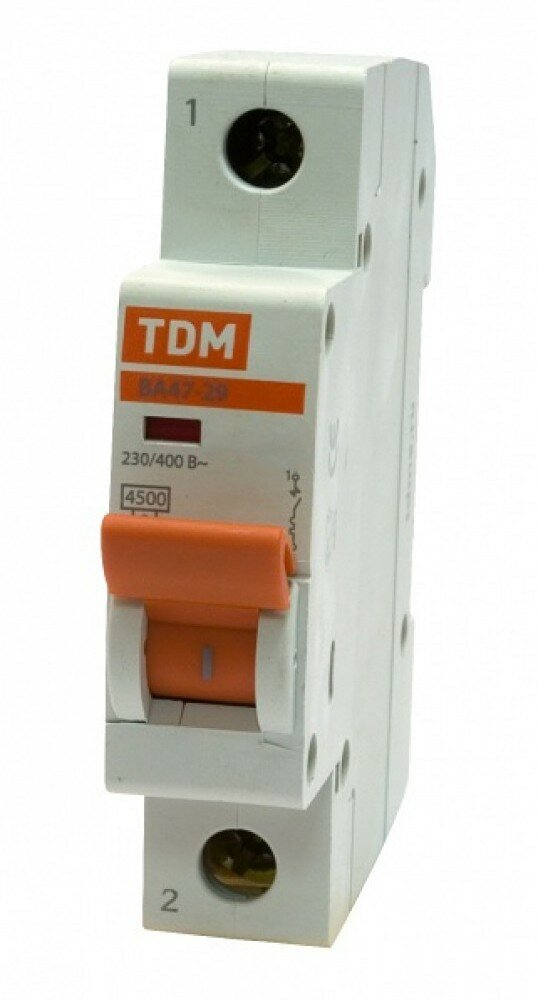 Автоматический выключатель ВА47-29 1Р 10А 4,5 кА тип D TDM Electric информация:
