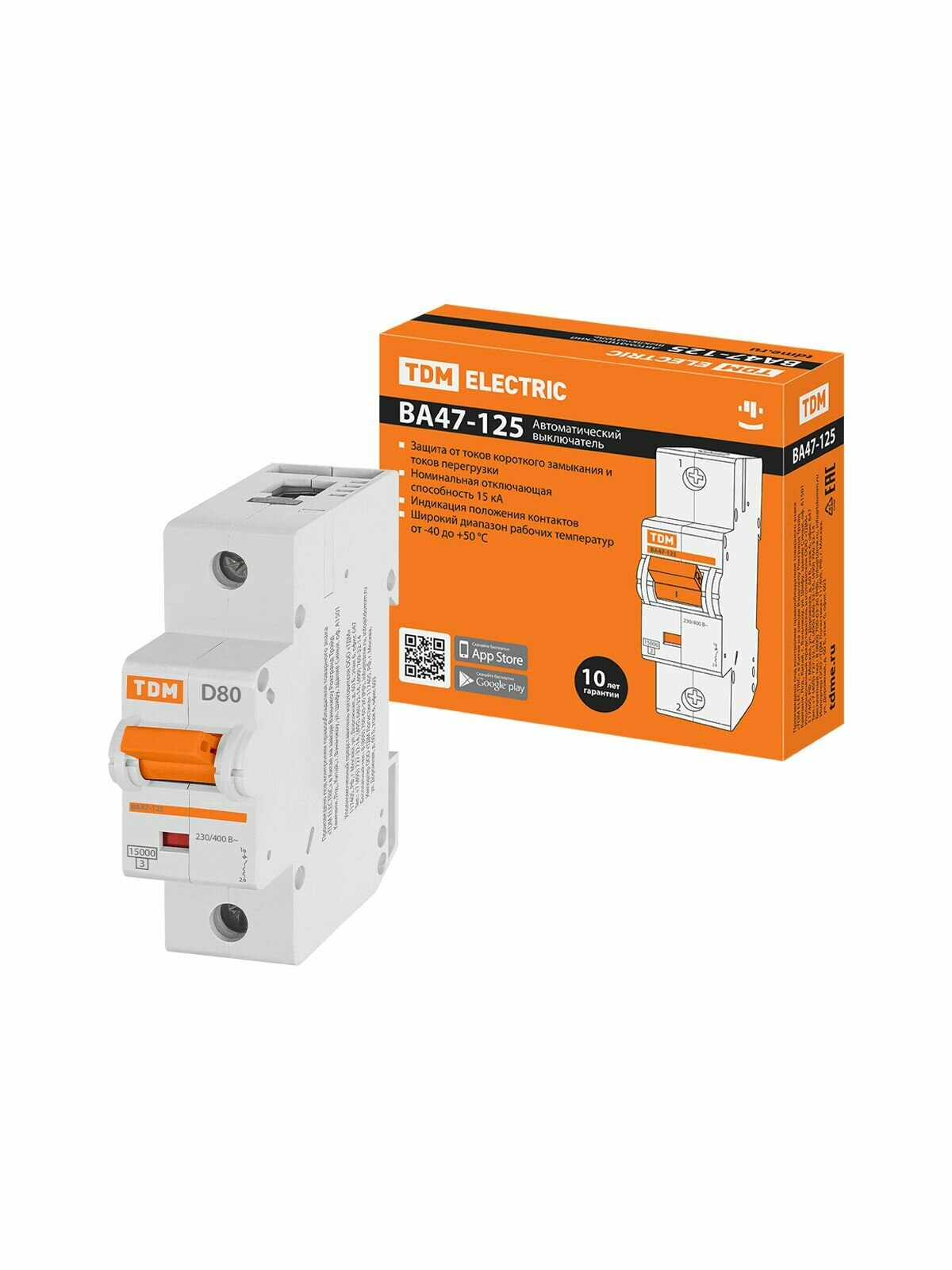 10 цен на Автоматический выключатель Tdm Electric ВА47-125 1Р 80А 15кА х-ка D (SQ0208-0010)