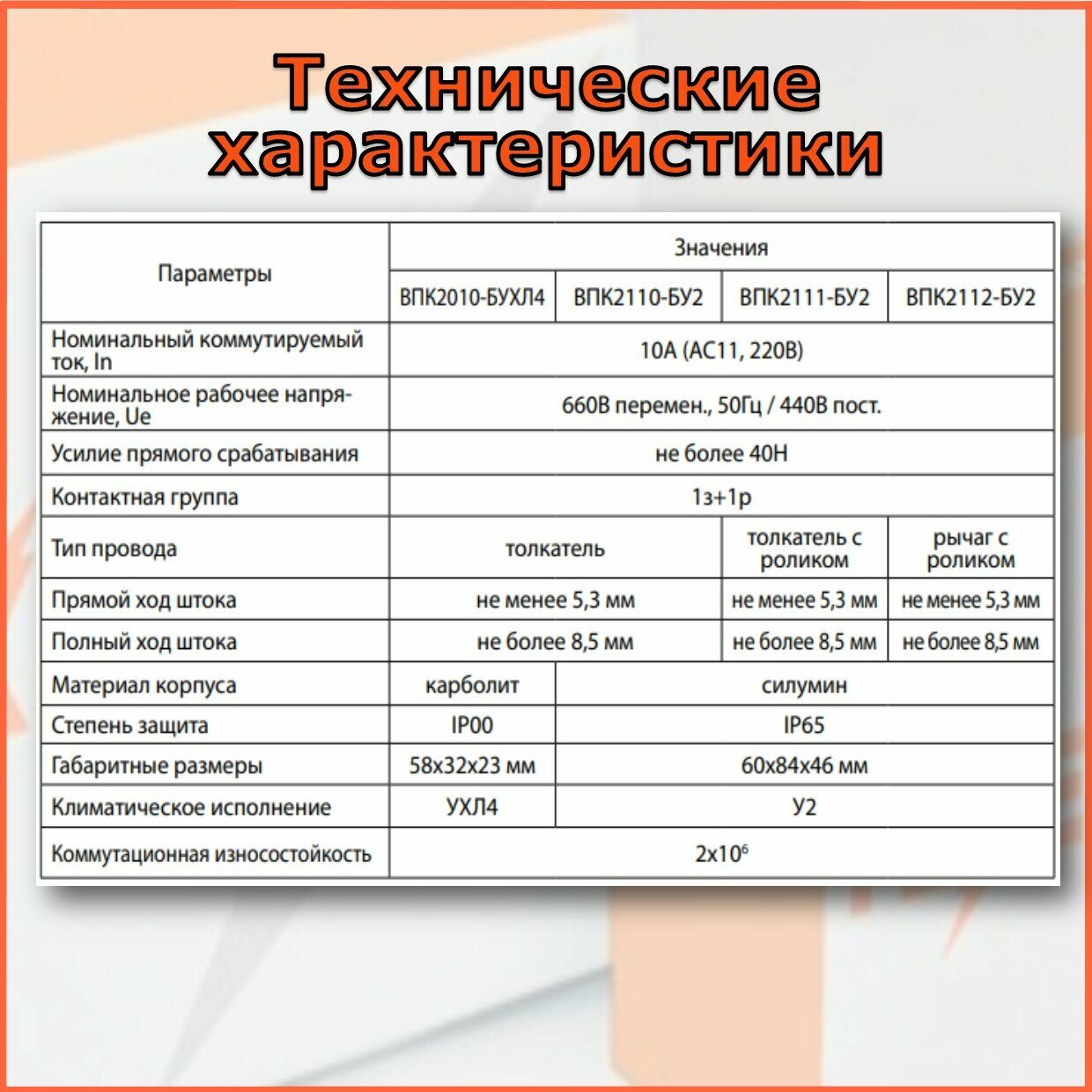Выключатель концевой путевой ВПК-2010 БУХЛ4 (толкатель) чёрный информация: