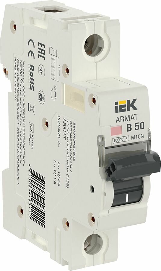 Автоматический выключатель ARMAT M10N 10кА, 1 полюс, характеристика B, 50 Ампер, ИЭК информация: