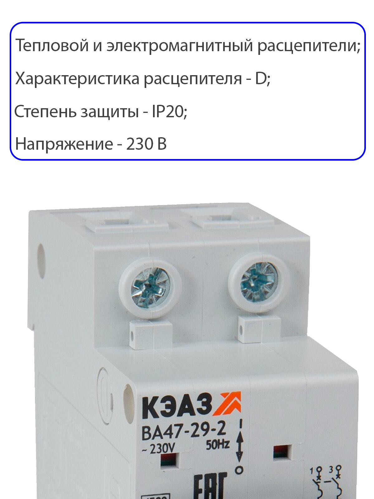 Выключатель автоматический модульный КЭАЗ ВА47-29-2D10-УХЛ3 (4,5кА) информация: