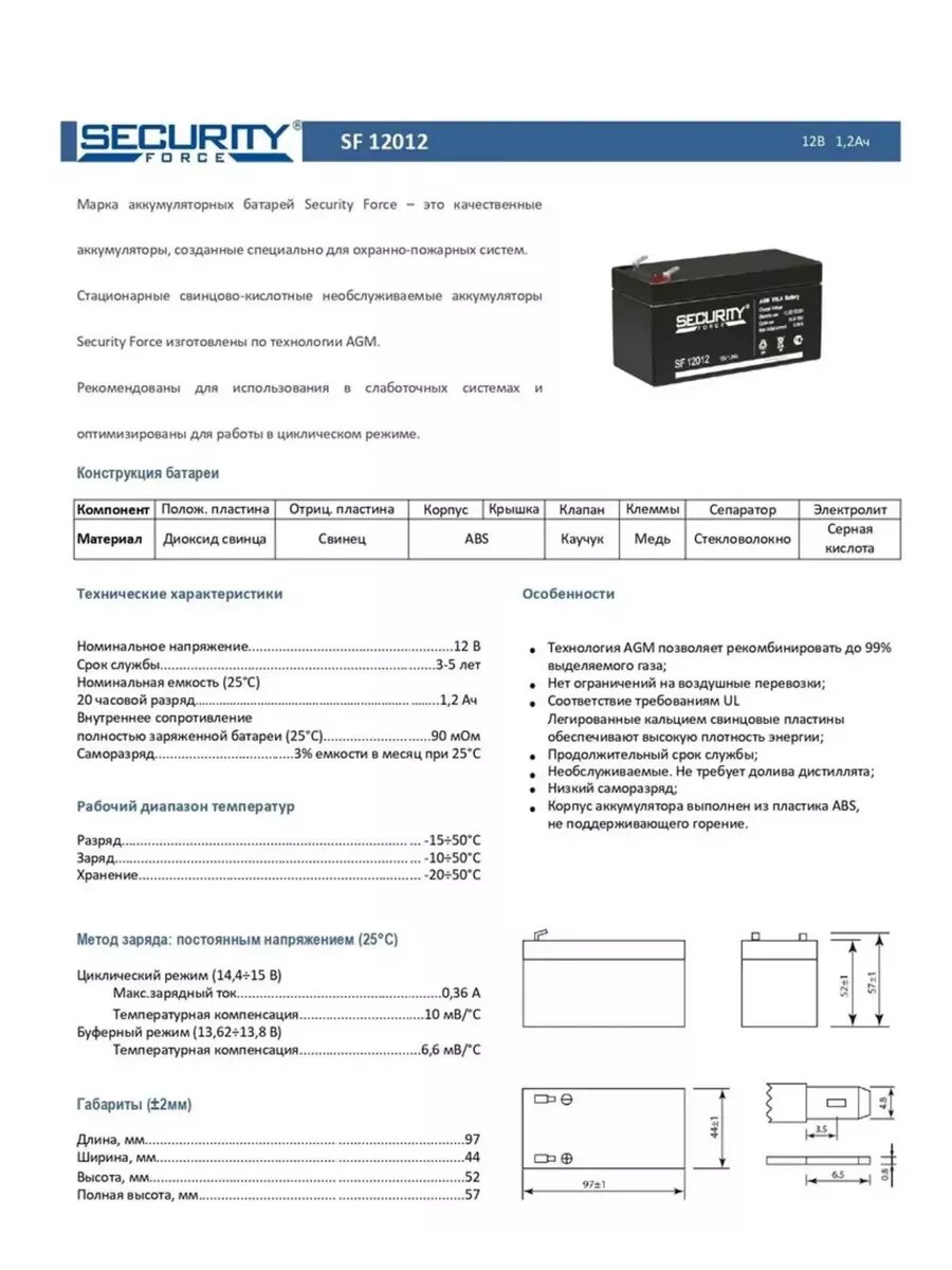10 цен на Аккумуляторная батарея SF 12012 12B 1.2Ач. 4614030010003