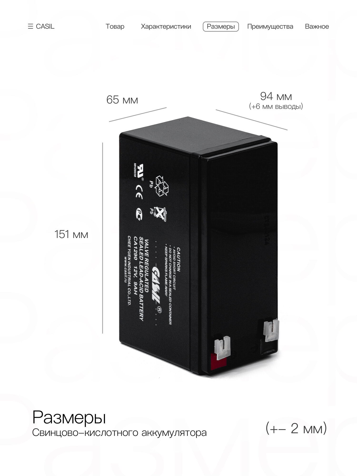 Свинцово - кислотный аккумулятор CASIL CA 1290 (12 В , 9 Ач) информация: