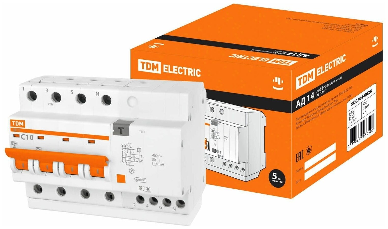 Диф. автомат АД14 4Р 10А 30мА TDM информация: