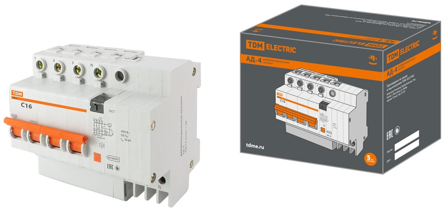 Дифференциальнай автомат АД-4 4Р 16А 30мА TDM SQ0221-0006 (1 шт.) информация: