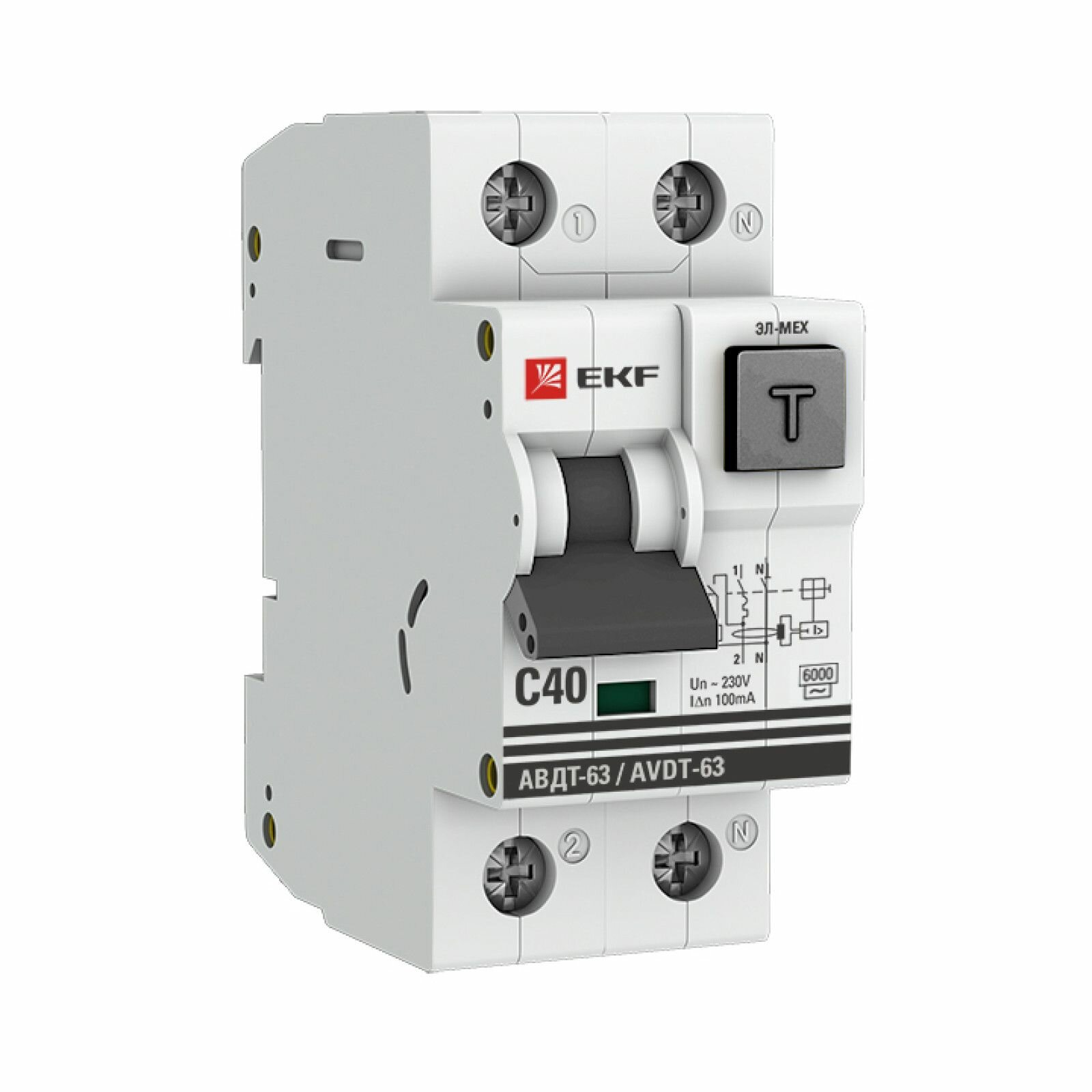 Дифференциальный автомат АВДТ-63 40А-100мА (характеристика C, эл-мех, тип АС) 6кА EKF PROxima информация: