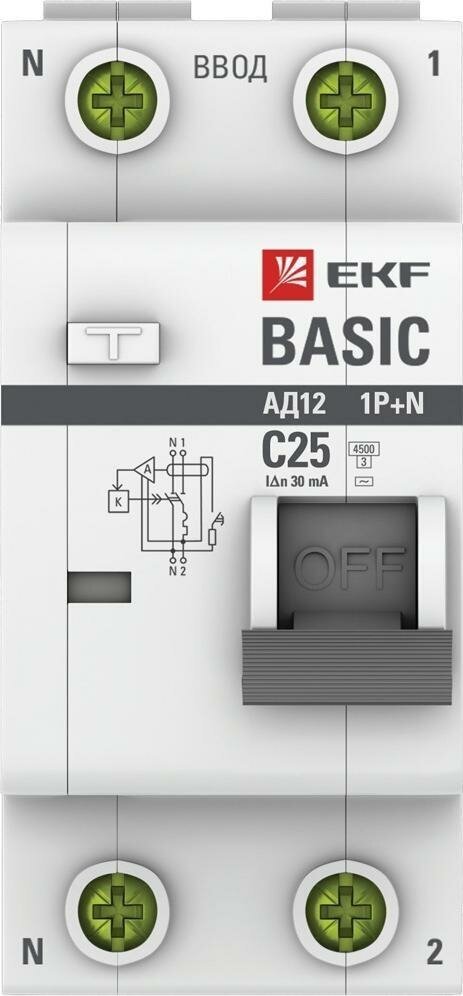 Отзывы на Дифференциальный автоматический выключатель EKF АД-12 Basic 2P 25А 30мА класс AC