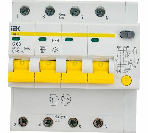 Отзывы на Выключатель автоматический дифф. тока АД14 4Р 63А 100мА IEK / Автомат 63А 100мА ИЭК MAD10-4-063-C-100