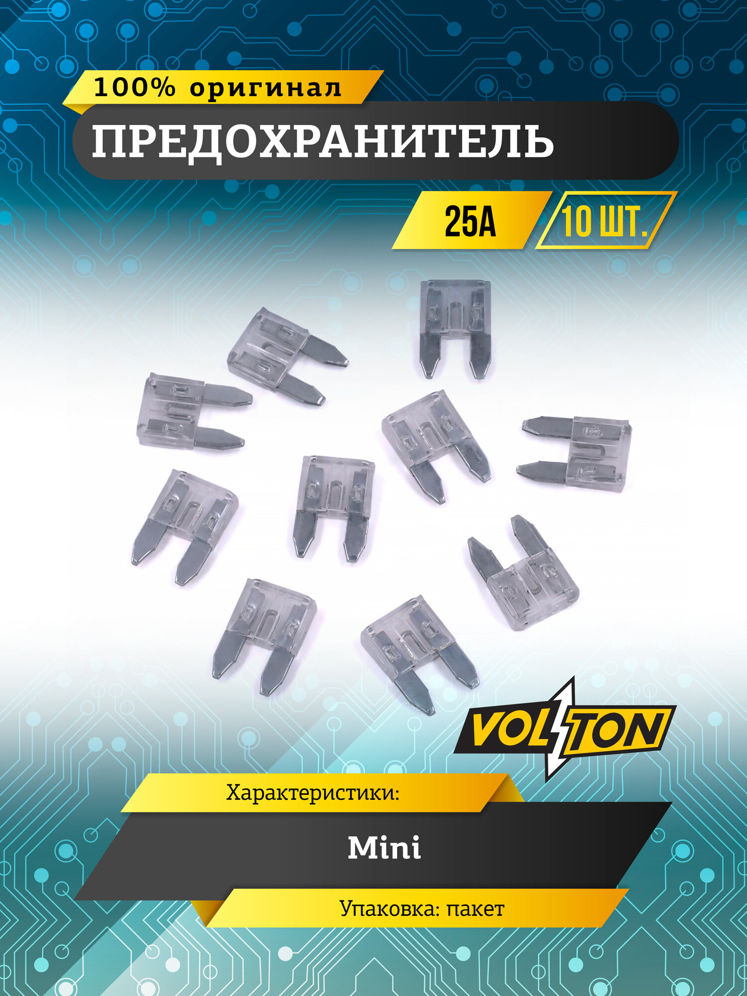 Предохранитель VOLTON, 25 А, MINI, 10 штук, цинк, качественный информация: