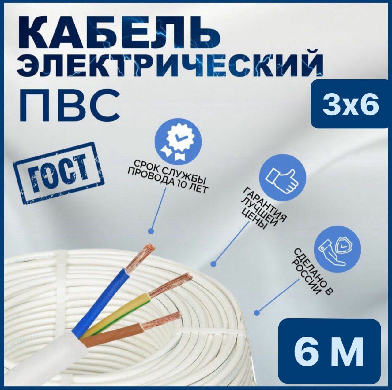 Провод ПВС 3х6 , ГОСТ, 6 метров информация: